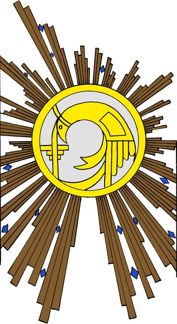 In the rectangular ‘boxes’ below the groupings of smaller pipes are again found feathers from the rain bird. This time they are overlaid with one of the four Hebrew letters constituting the name of God, “Yahweh” or Jehovah: yud hey vahv hey, also known as the Tetragrammaton. These can be read starting in the upper right hand corner and reading in a counterclockwise direction. Thus, the rays of sun and God are both above all things while God himself is IN all things.