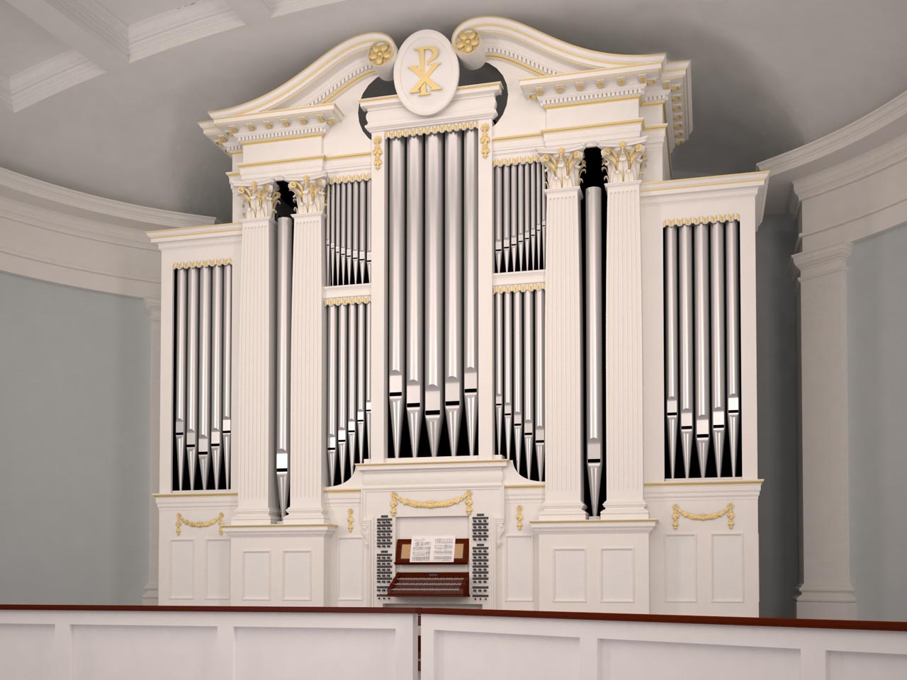 The new organ continues our nuanced approach towards 19th and 20th century church music, retaining our core sound and philosophy of late 18th century Holland. To this we added a broader range of reeds, additional 8 foot foundation stops, a second 16 foot reed in the pedal, and the choir division located in a second swell box. All of this is wrapped in monumental casework inspired by American Centennial architecture of the 1870s. The finished instrument will support an ambitious music program headed by Mark Ball, Elisa Bickers, and Matthew Shepard that encompasses multiple choirs plus orchestra and instrumental ensembles. It also serves as a venue for the greater Kansas City area and UMKC Conservatory. Expected installation is in 2016.